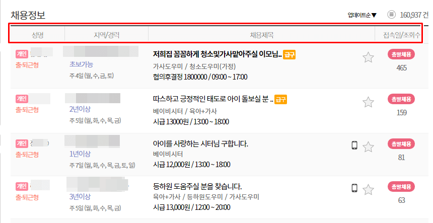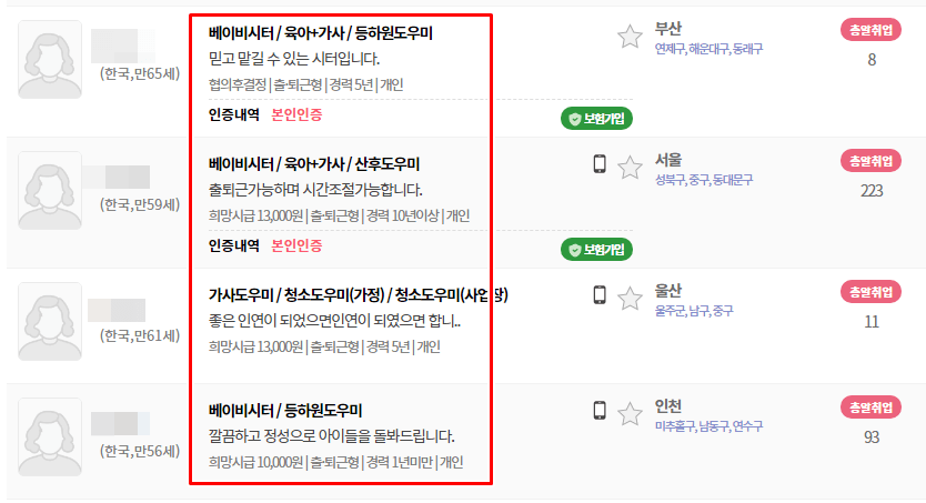 베이비시터 구인구직
