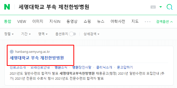 먼저 세명대학교 부속의 제천한방병원 홈페이지를 들어가면 되는데요. 홈페이지 접속 후에는 다양한 메뉴들을 볼 수 있습니다.