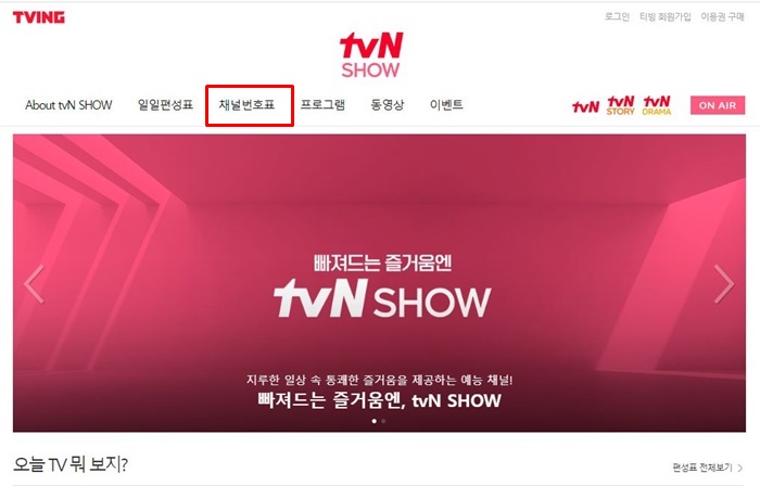 - tvn show 채널번호 확인방법