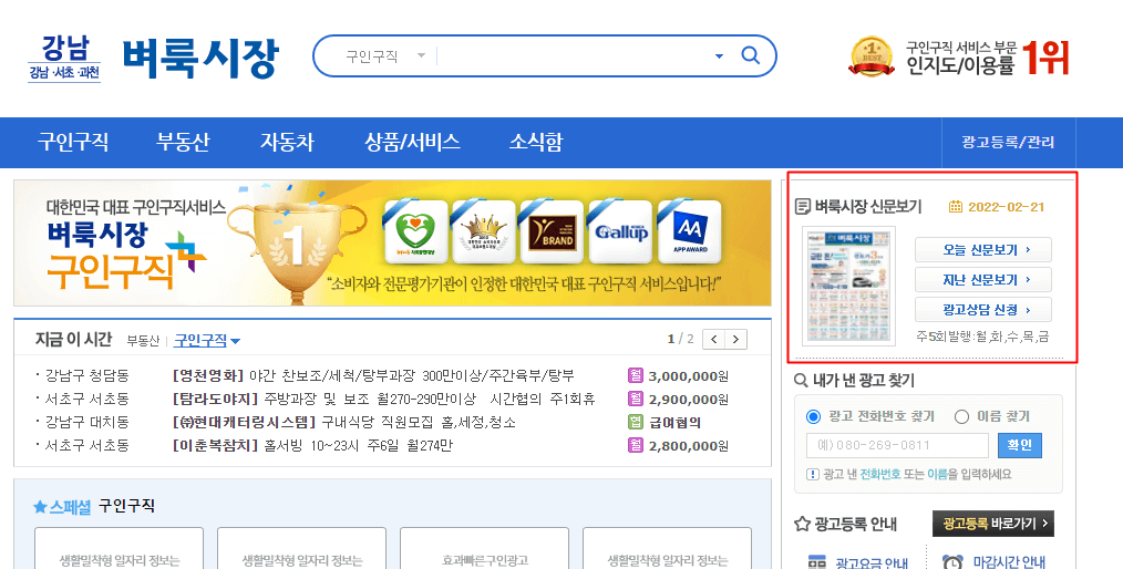 벼룩시장 종이신문 그대로 보기에서도 구인구직 광고를 많이 보셨을 텐데요. 신문 말고도 이 홈페이지를 통해서도 구인구직을 찾아서 보실 수 있습니다.
